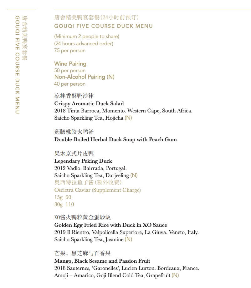 Having encountered numerous social media posts extolling the virtues of Gouqi and its famed Chinese duck, I succumbed to the hype and booked a table for two on a Wednesday evening. In a strategic move to avoid the impending Chinese New Year rush, whilst also marking our 9-year anniversary, I anticipated a memorable dining experience and we set our expectations high for the 5-course duck tasting – an offering requiring a 24-hour advance notice.