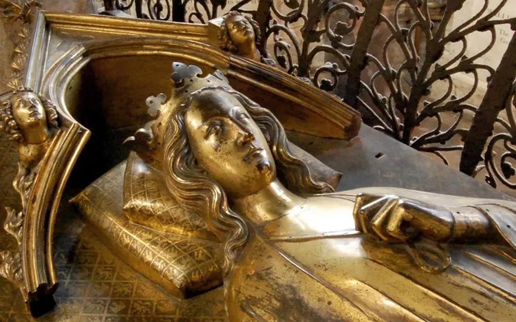 Next to him lies his queen Philippa of Hainault in an alabaster effigy. She acted as regent when Edward was off at war and fostered alliances between England and various European powers, including her native Hainault, which helped strengthen England’s position in international affairs.