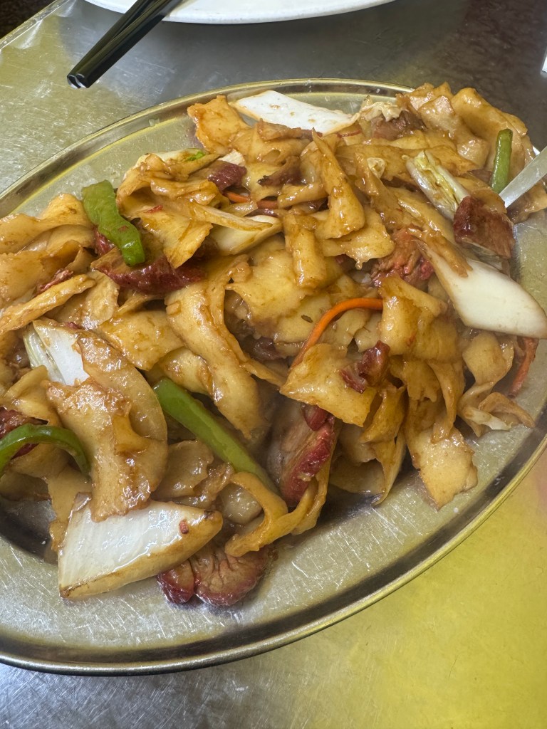Suddenly, out of the corner of my eye, I saw a man pulling noodles. HAND PULLED NOODLES. Before I even had the chance to gasp a militant Chinese lady projected “table for ONE???!” at me, and I – being too polite to decline and with my head already half way to the door – obliged her. She sat me down inside in a warm little corner of the room and I dried off, inspecting the menu.